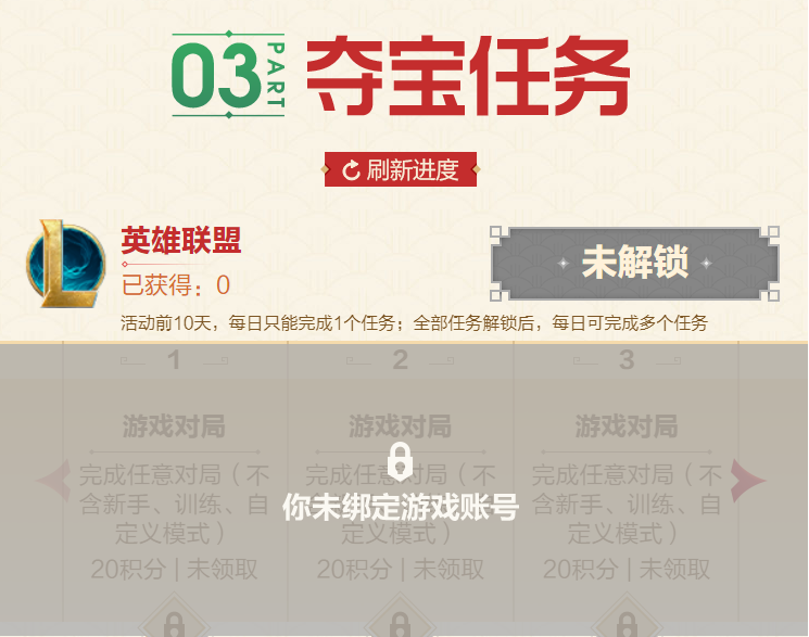 (夺宝任务在绑定角色后开启)